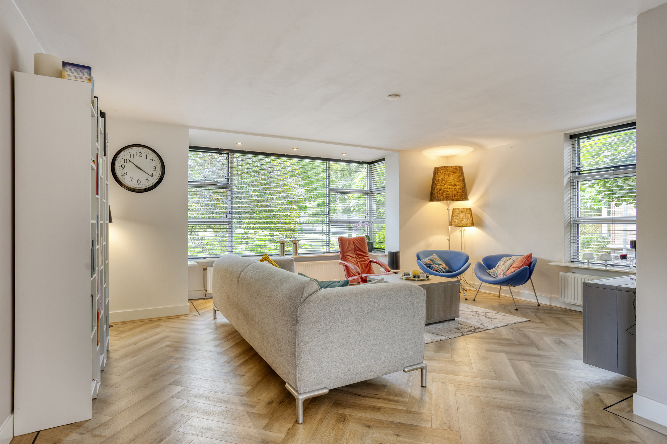 Entree met hal, modern toilet met fonteintje. De ruime en lichte woonkamer beschikt over een sfeervolle erker en vrij uitzicht op het park. Aansluitend vindt u de eetkamer met tweede erker en openslaande deuren naar de tuin. De royale woonkeuken met kookeiland is voorzien van diverse inbouwapparatuur en biedt eveneens toegang tot de tuin. Vanuit de keuken is de praktische berging met buitendeur bereikbaar. De begane grond is in 2020 gerenoveerd en voorzien van een luxe visgraatvloer.