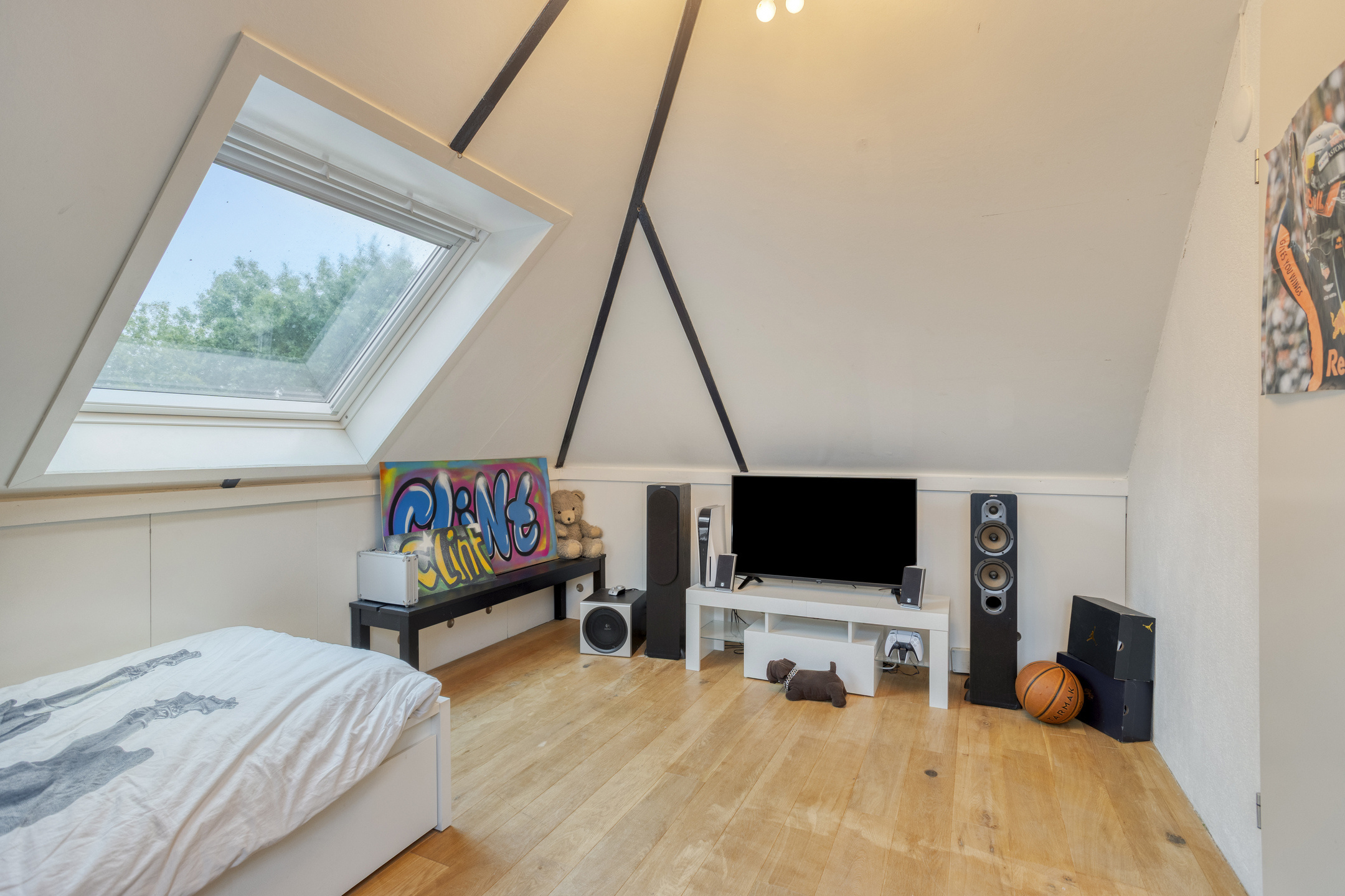 Ruime voorzolder met dakraam en bergruimte. Hier bevinden zich nog eens twee royale lichte slaapkamers, beide voorzien van meerdere dakramen en bergruimte.