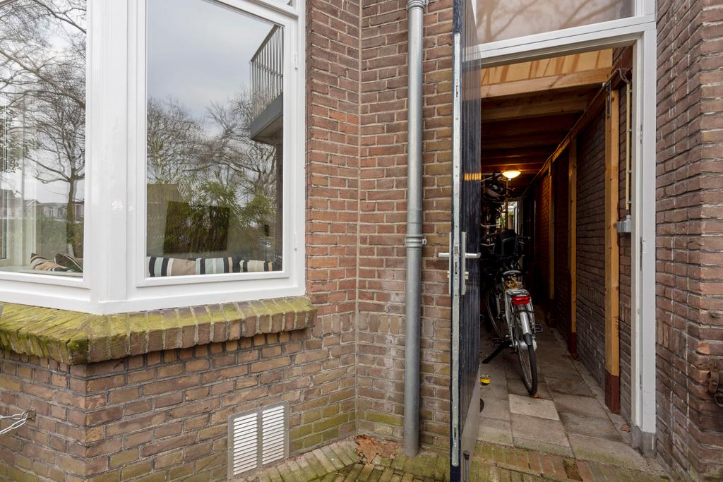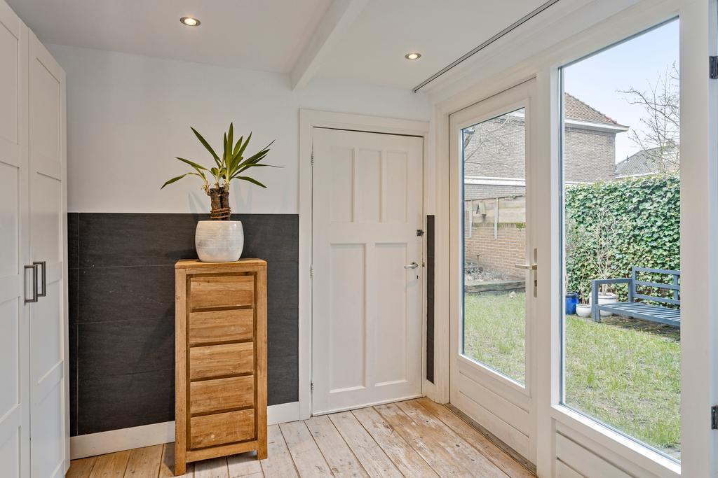 Begane grond: Entree, tochtportaal met garderobe, hal met trap naar 1e verdieping en een toilet met fontein, ruime woonkamer met houten vloer, openslaande deuren naar de tuin en een erker welke is voorzien van een erkerbank (’19), nette open keuken met diverse inbouwapparatuur, bijkeuken met toegang tot de berging en de tuin, de besloten achtertuin ligt op het zuiden en is voorzien van een achterom via de doorgang rechts van het huis. Hier is een gang gecreëerd welke langs het huis loopt, met een vide voor extra opslagruimte.