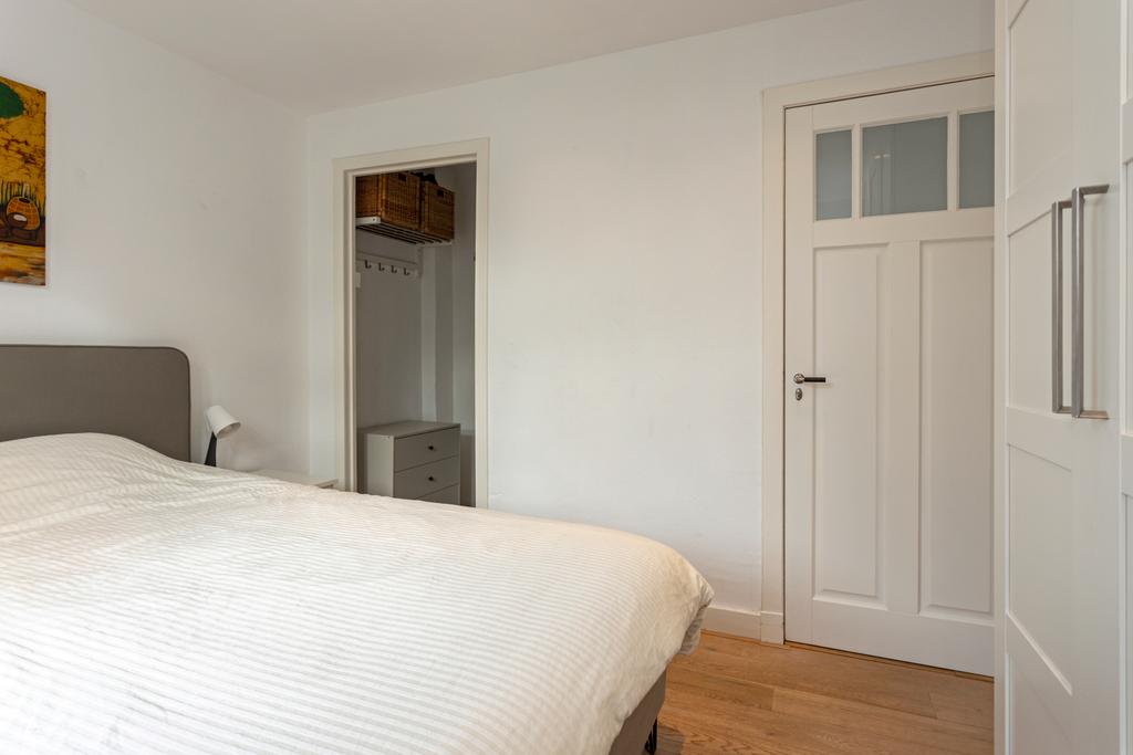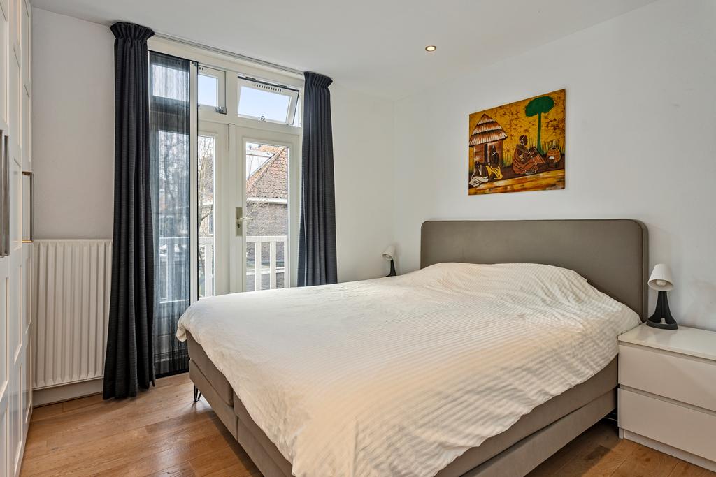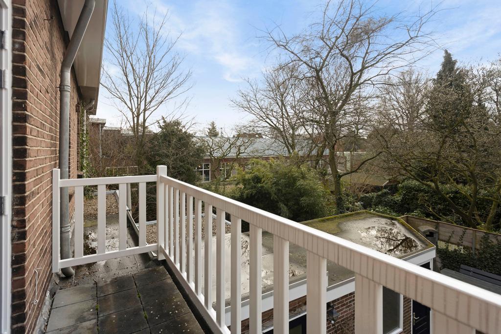 1e Verdieping: Overloop, aan de achterzijde 2 slaapkamers waarvan 1 met balkon en een grote inloopkast, slaapkamer 3 ligt aan de voorzijde en is tevens voorzien van een balkon, nette verzorgde badkamer met ligbad, wastafel met spiegel, opbergruimte, inloopdouche, designradiator en een hangend toilet.