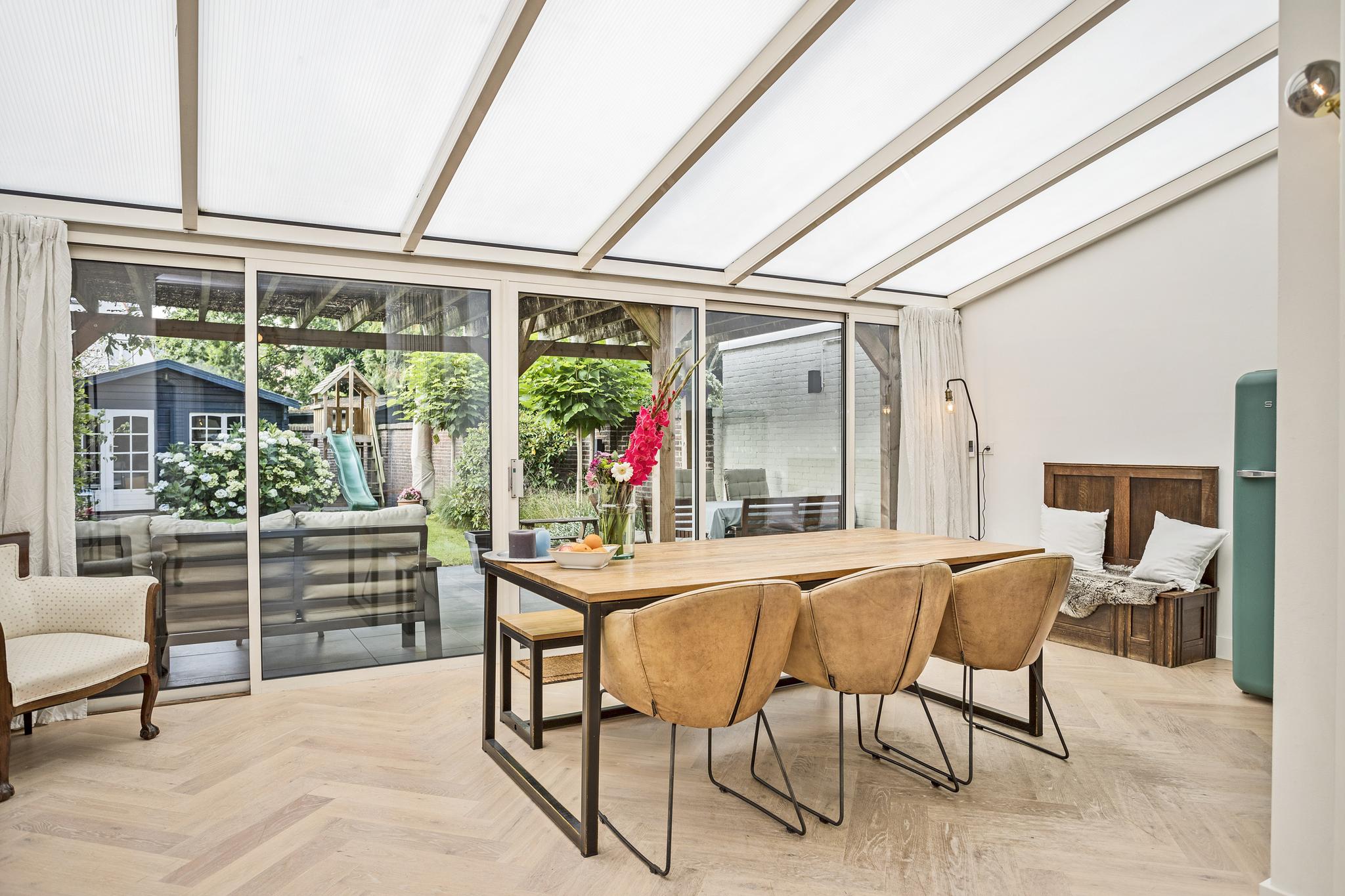De woning is de afgelopen jaren grotendeels gerenoveerd, gemoderniseerd en verkeert in een perfecte staat van onderhoud. De serre zorgt voor een lichte begane grond wat een zeer ruimtelijk gevoel geeft. Beide tuinen zijn recent volledig gerenoveerd en tot in de puntjes verzorgd. In de achtertuin op het zuiden van maar liefst ca. 120 m2, is het ultiem genieten, op zonnige dagen geniet je onder de pergola van 22 m2. Er bevindt zich een tuinhuis en een achterom. De ruime fraaie aangelegde voortuin is voorzien van een overkapping voor fietsen.