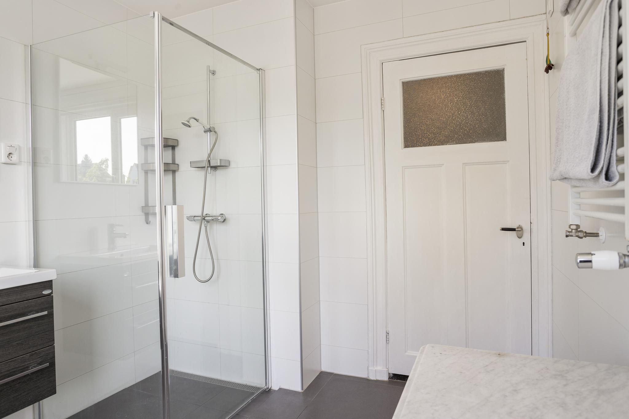 1e Verdieping: overloop met separaat toilet, 2 ruime slaapkamers met inbouwkasten, waarvan de voorste is voorzien van een balkon, 3e kleinere slaapkamer, moderne badkamer met ligbad, douche en wastafelmeubel.