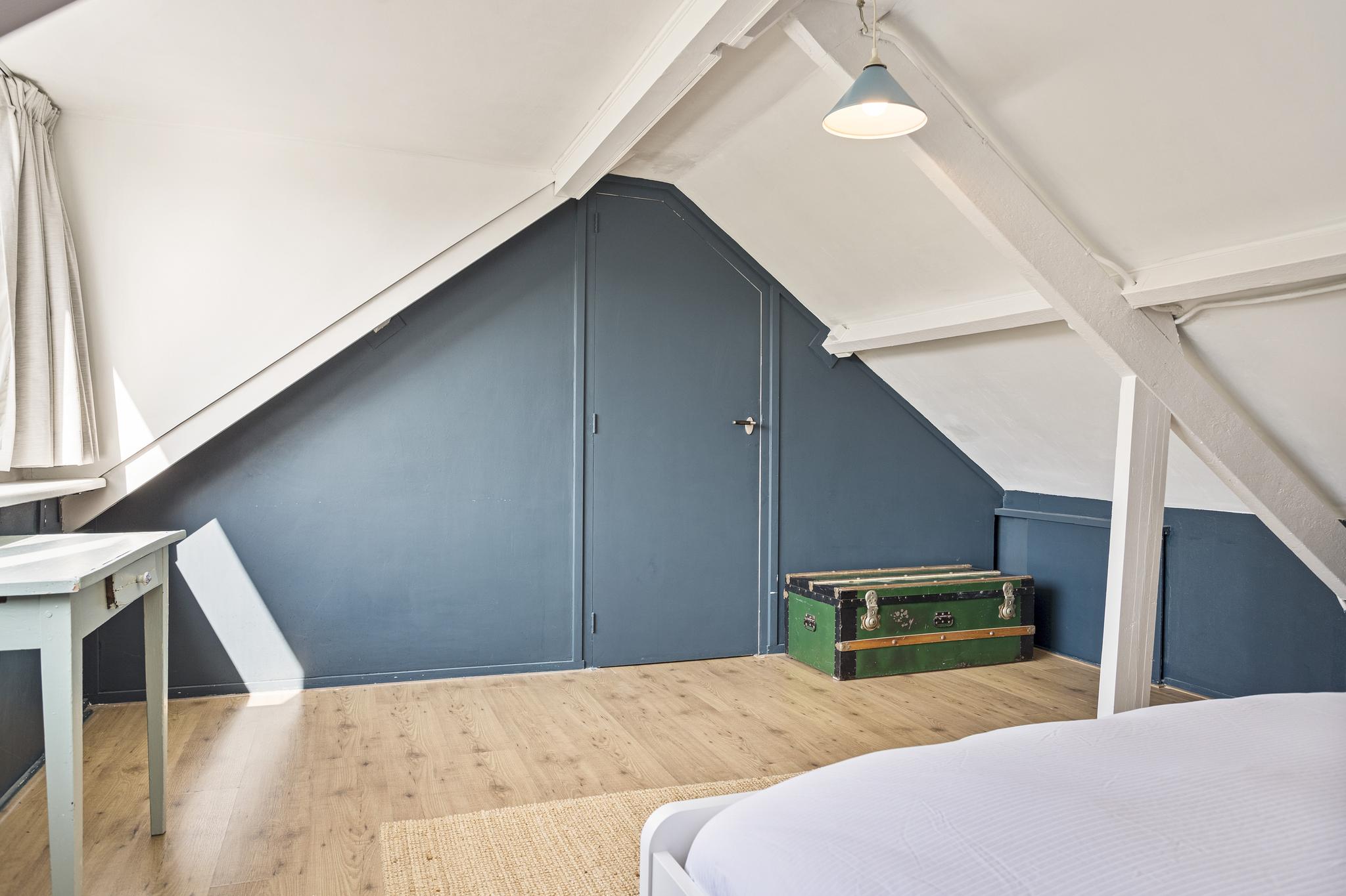 2e Verdieping: via de vaste trap is de zolderverdieping te bereiken. Deze verdieping bestaat uit een voorzolder met bergruimte en cv-opstelling en een grote extra slaapkamer over de hele breedte van de woning. Deze slaapkamer is voorzien van een dakkapel.