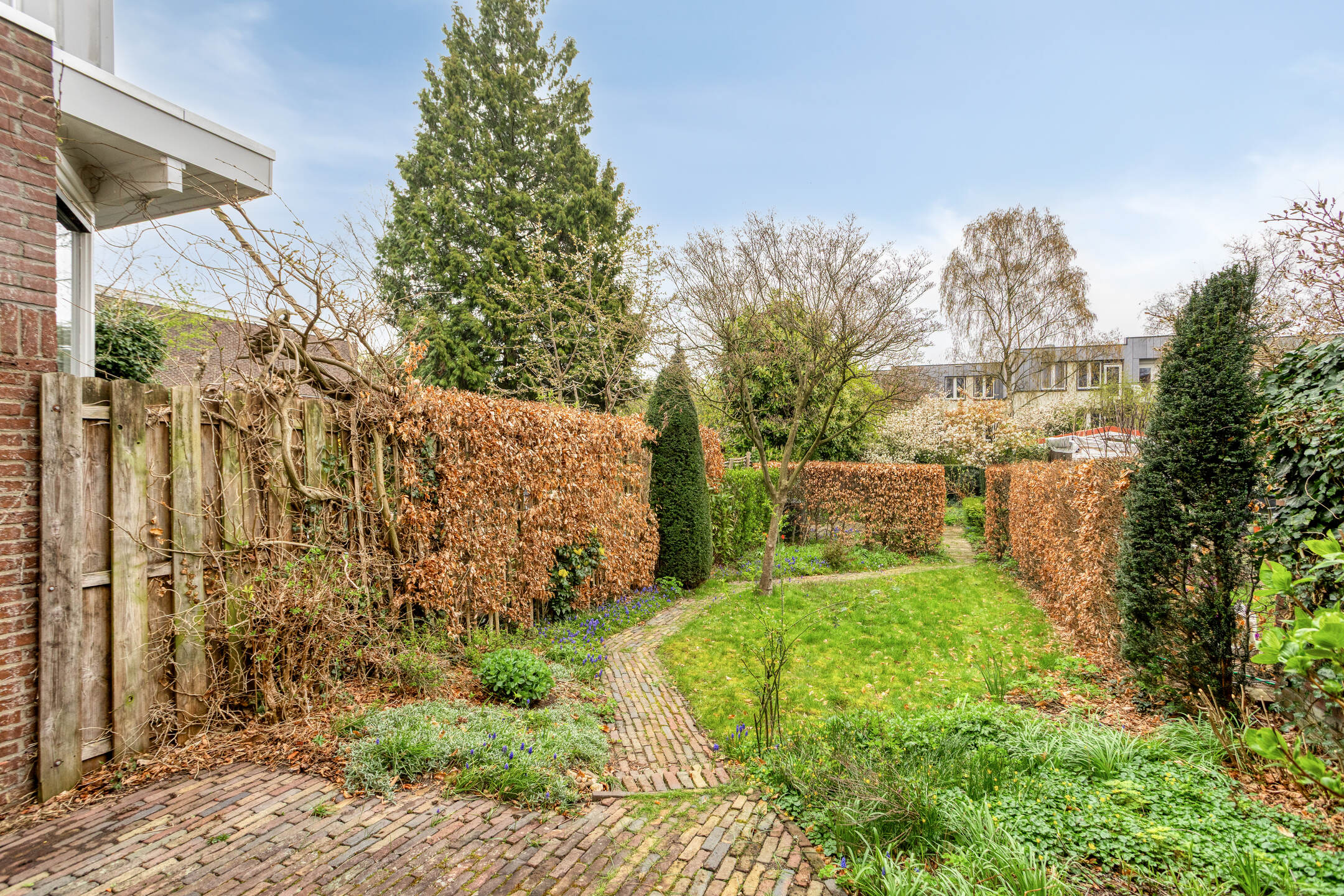 De voortuin is ruim en passend bij de uitstraling van de woning. De 28 meter diepe achtertuin is sfeervol aangelegd, groen en beschut en biedt gedurende de dag zowel zon- als schaduwplekken.