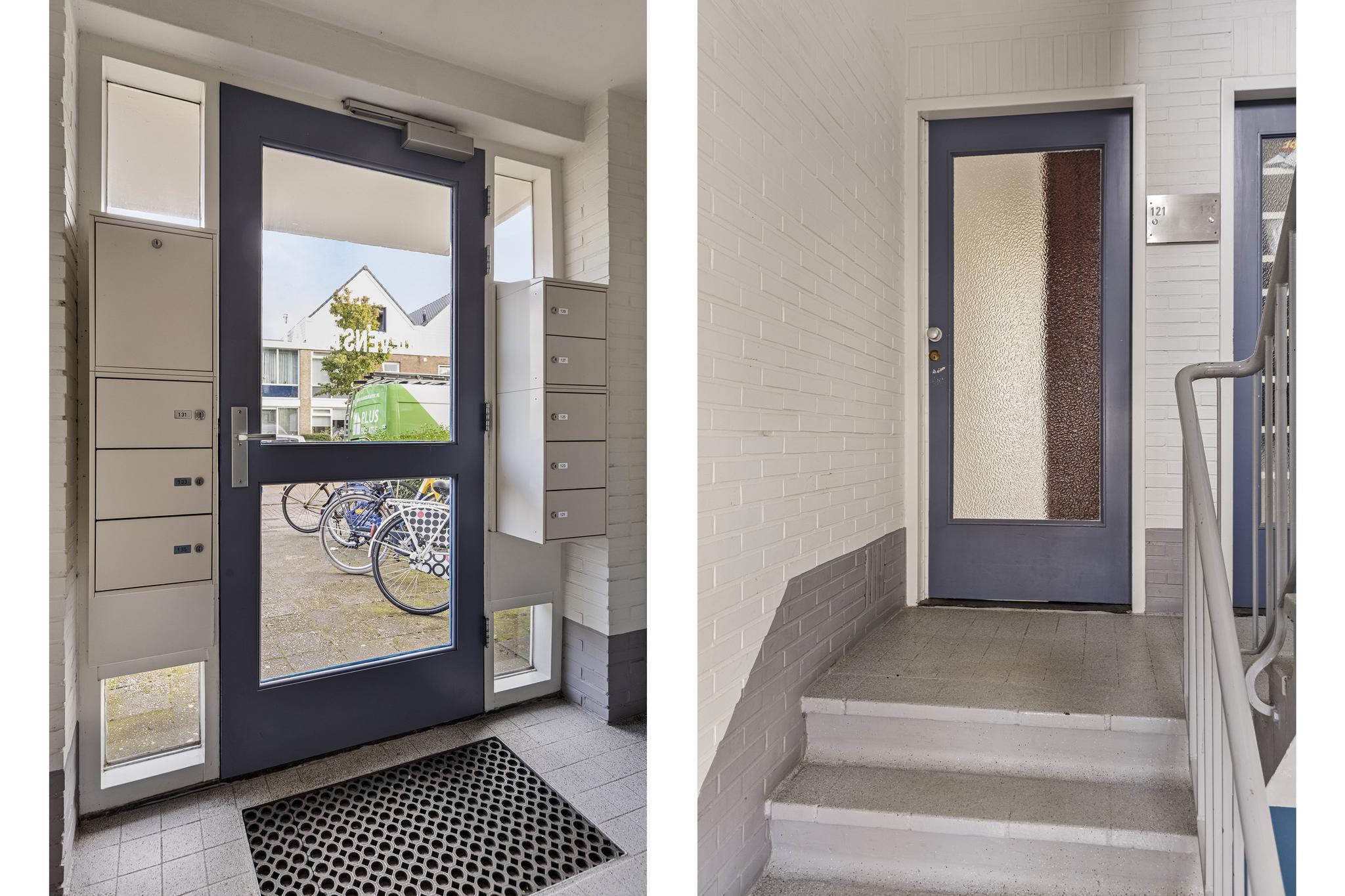 Gemeenschappelijke entree met brievenbussen, bellen tableau en trappenhuis.