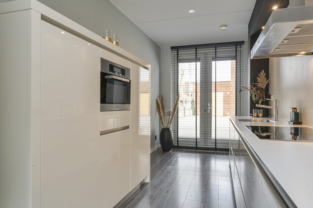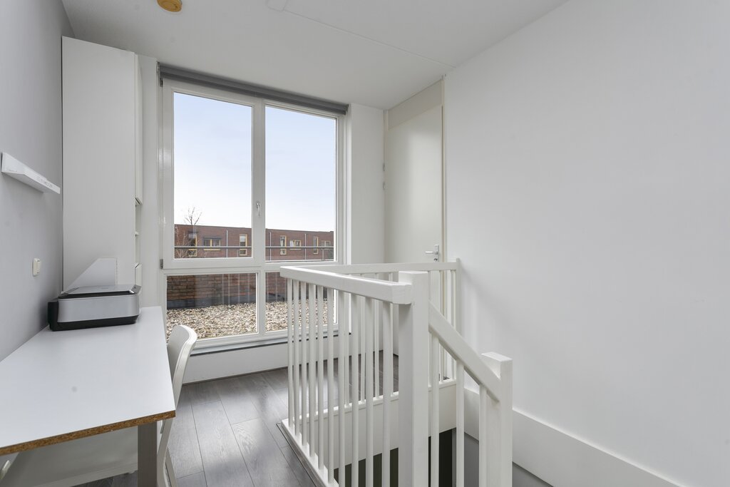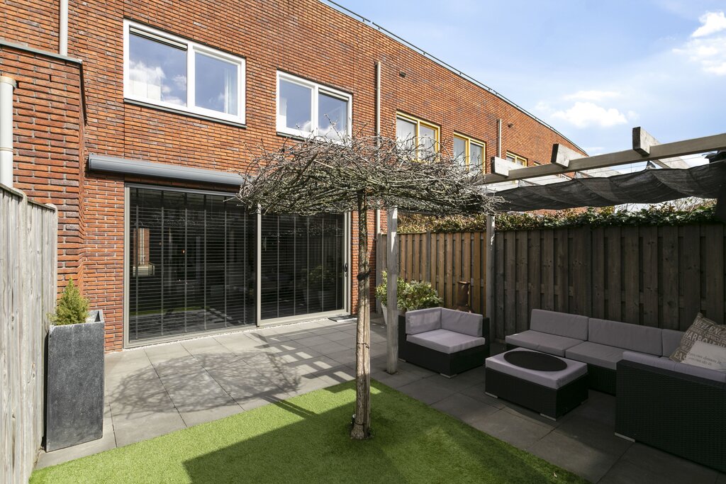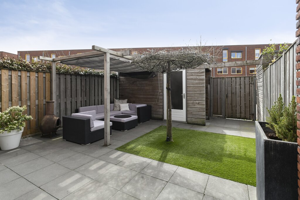 Heerlijke zonnige fraai ingerichte achtertuin met achterom en een houten berging van 7m2. De woning beschikt over een antracietgrijs elektrisch zonnescherm en een leuke overkapte zithoek. Mocht je nog meer eigen buitenruimte wensen? Dan kun je vrij eenvoudig op de 2e verdieping een groot dakterras realiseren welke dan op het zuiden is gelegen.