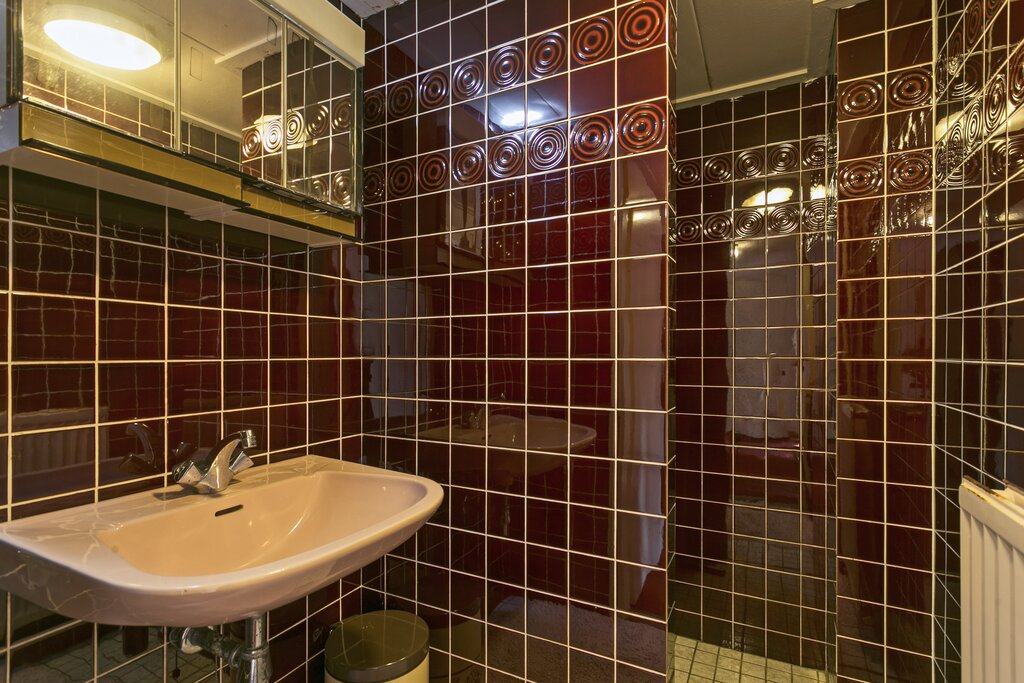 Gang met bergkast en een grote inloopkast / 2 lichte slaapkamers, beide voorzien van een vaste kastenwand en een deur naar voortuin / 2e badkamer voorzien van een inloopdouche en een wastafel.