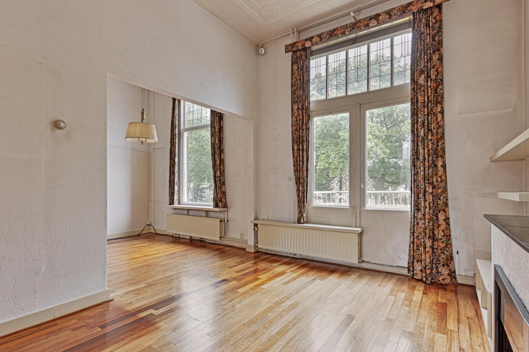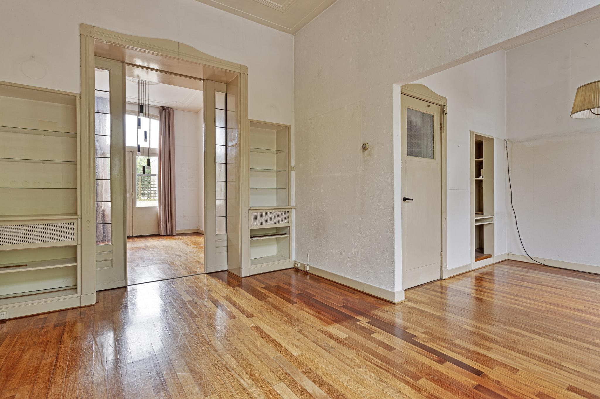 • Ruime en lichte L-vormige woonkamer ensuite met hoge plafonds en balkons aan zowel de voor- als achterzijde.