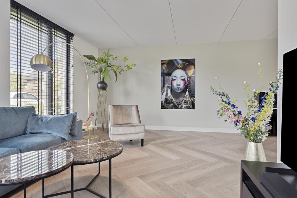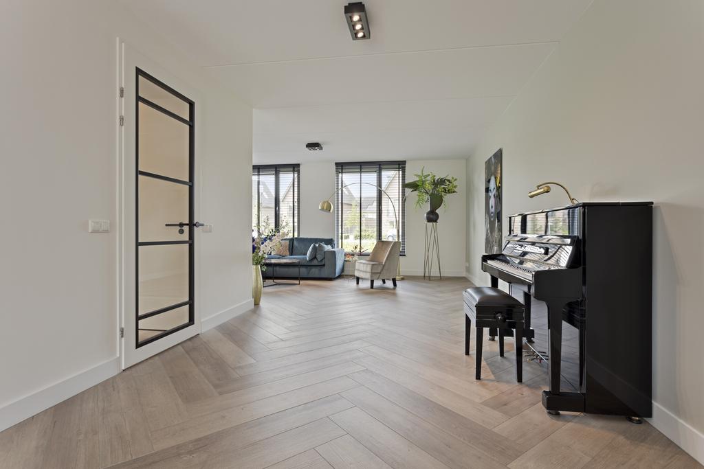 De Begane grond is voorzien van een fraai keramische visgraat vloer met vloerverwarming en stijlvolle airconditioning.