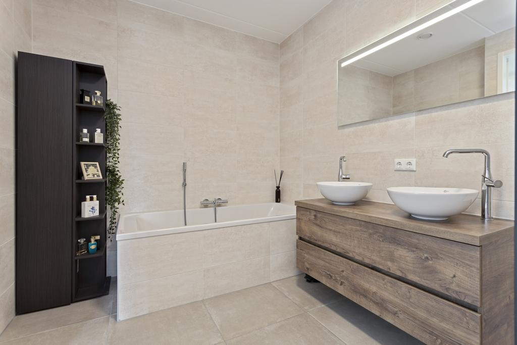 Overloop, separate moderne toiletruimte, drie ruime slaapkamers waarvan de master bedroom is voorzien van een inloopkast en stijlvolle airconditioning, luxe complete badkamer voorzien van ligbad, inloop regendouche, dubbele vaste wastafel met meubel, verwarmde spiegelwand en vloerverwarming.