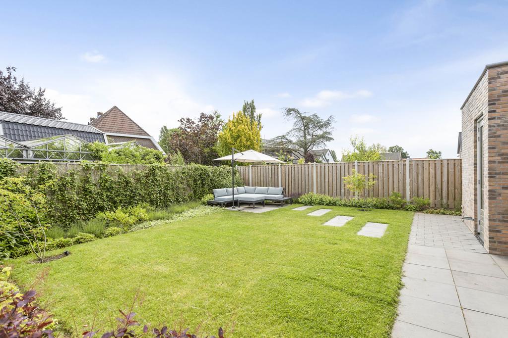 De zonnige en sfeervolle voor- en achtertuin is mooi aangelegd; hier heb je veel privacy. Je kijkt achter en voor ontzettend leuk van je af en dit geeft een vrij gevoel. De oprit biedt plaats voor (tenminste) twee auto’s en naast de garage loopt nog een pad naar de achterzijde.
