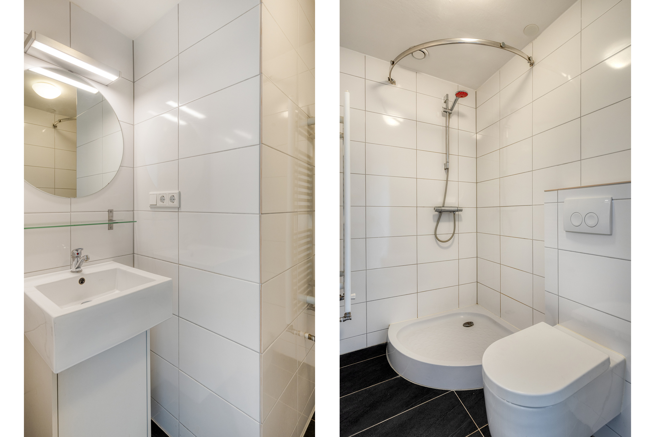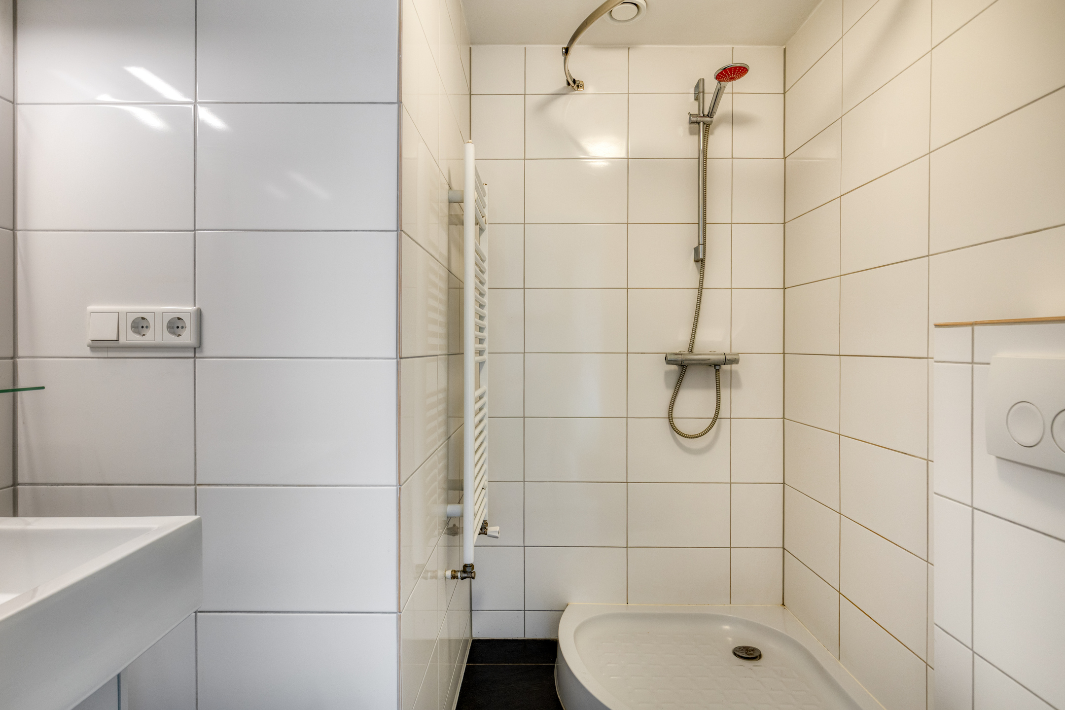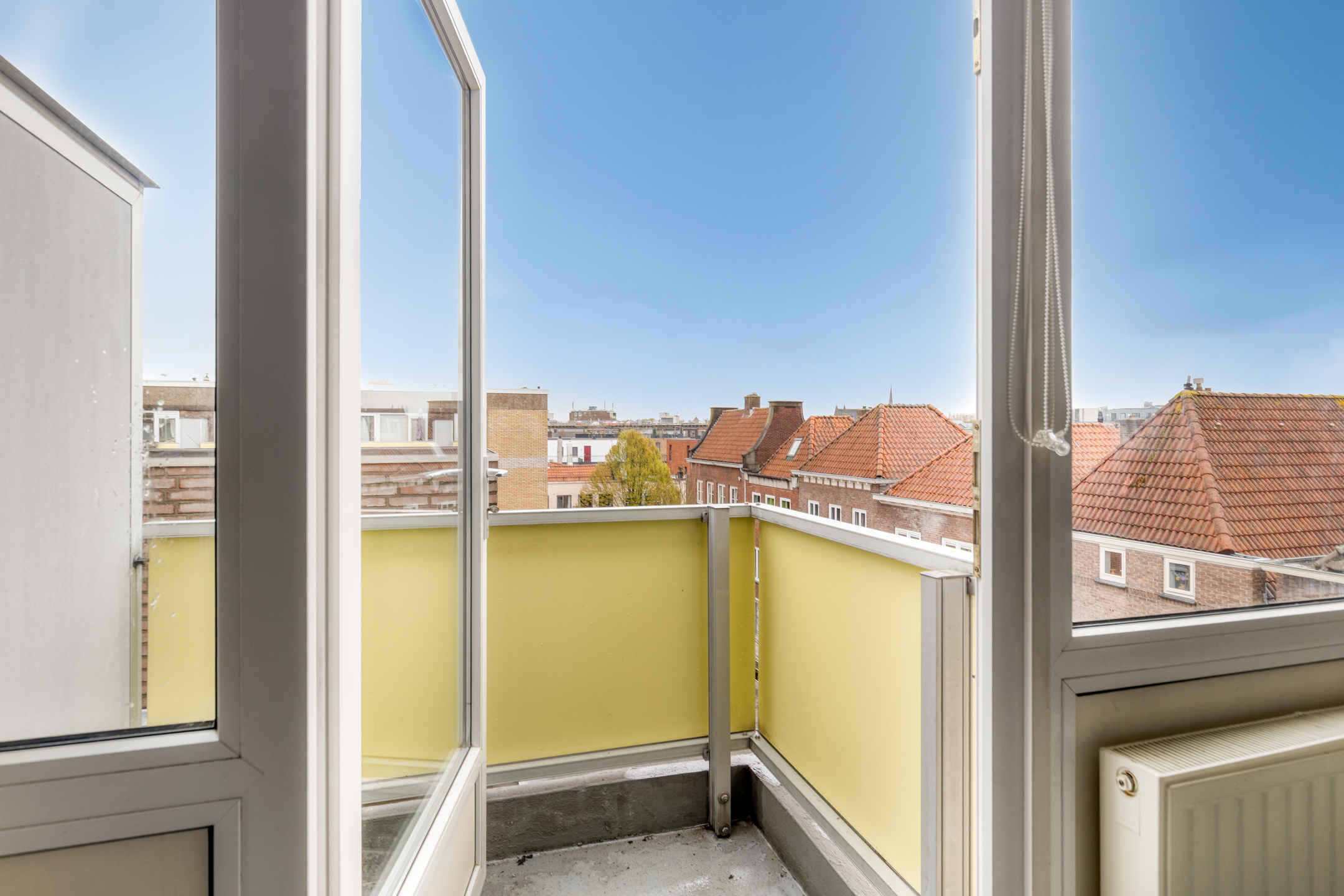 Gang met vaste kastenwand, open keuken voorzien van inbouwapparatuur, lichte woonkamer, slaapkamer met vaste kast en toegang tot het balkon met vrij uitzicht over het centrum van Nijmegen. De badkamer is uitgerust met een douche, wastafel en toilet.