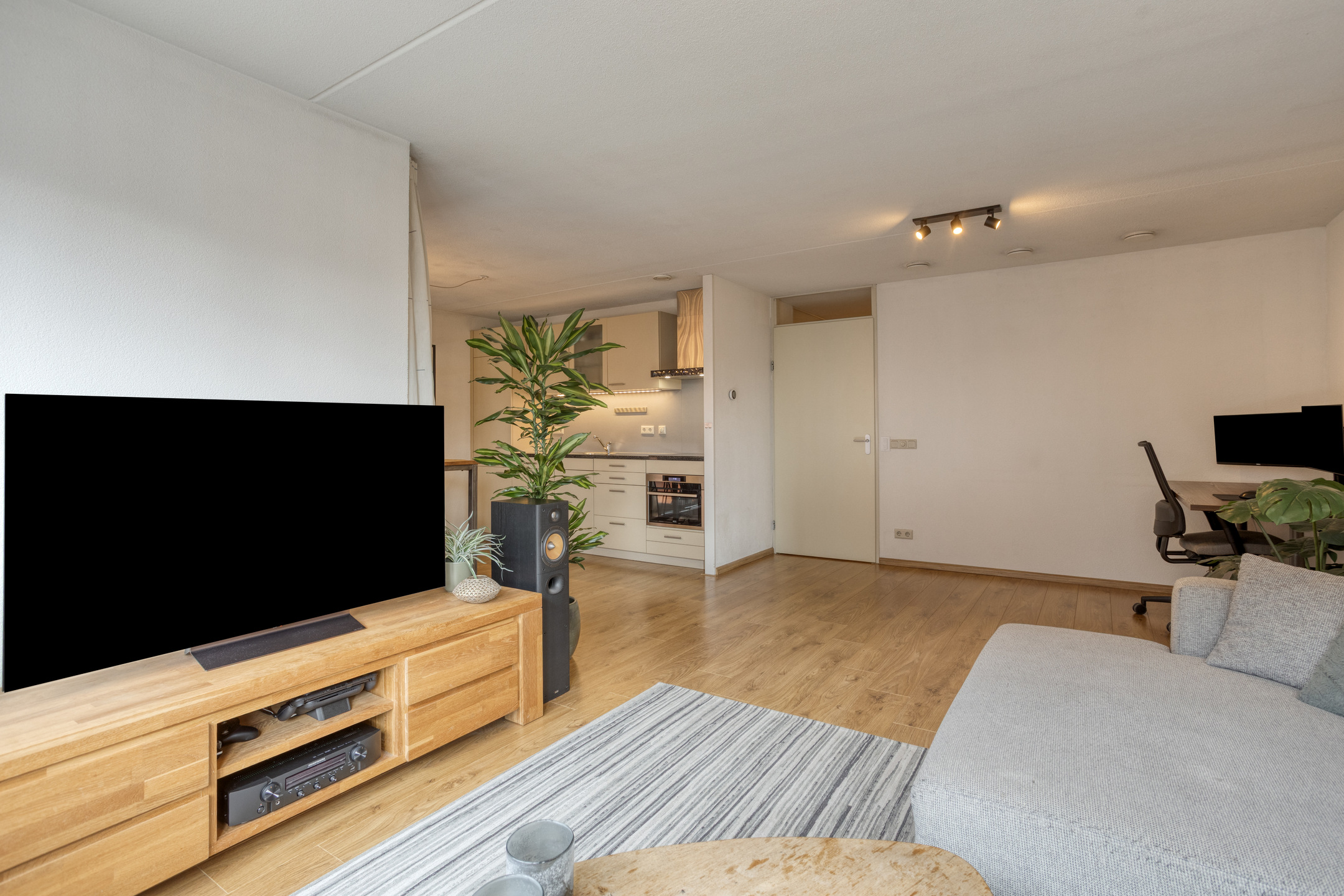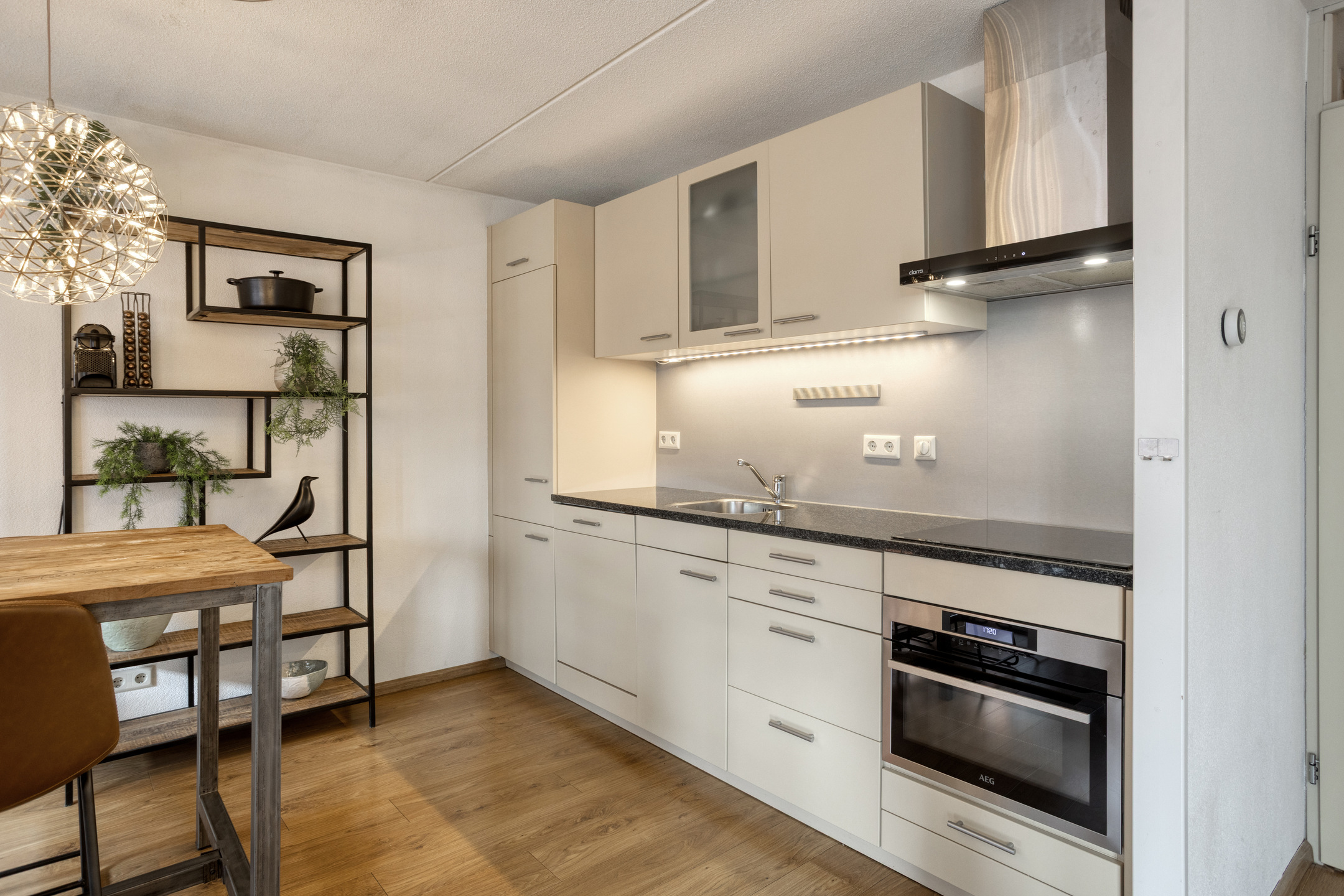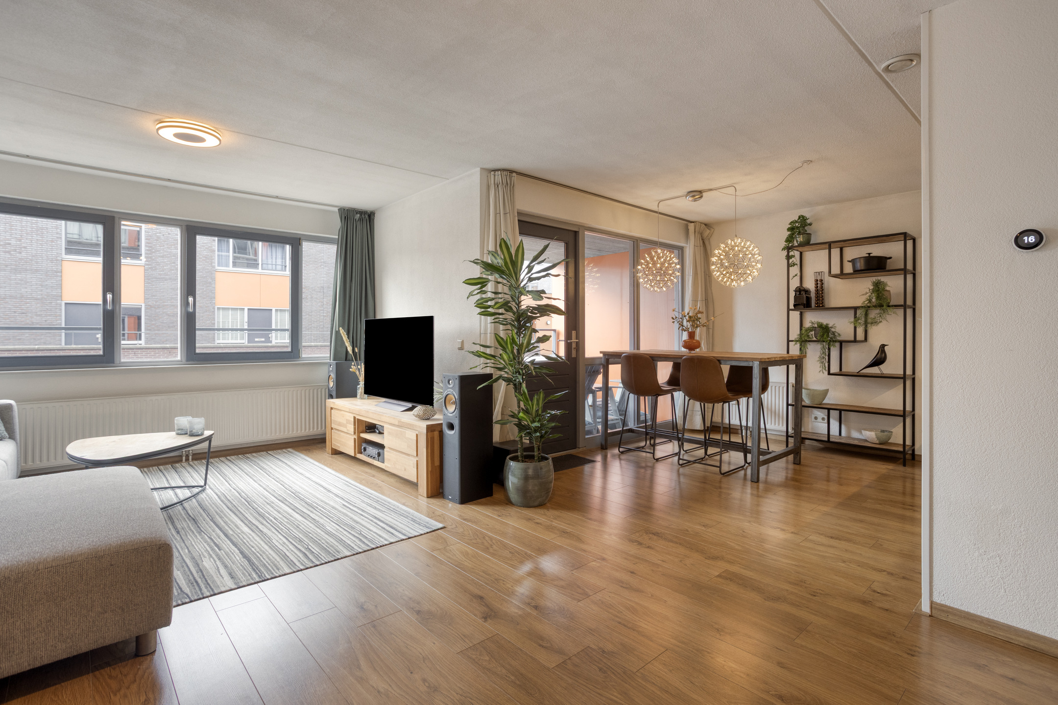 Entree/hal met meterkast en toiletruimte. De lichte en sfeervolle woonkamer is ruim opgezet en beschikt over een grote raampartij die zorgt voor veel natuurlijke lichtinval. De open keuken is voorzien van diverse inbouwapparatuur (deels v/d apparatuur is vernieuwd) en biedt toegang tot het balkon.