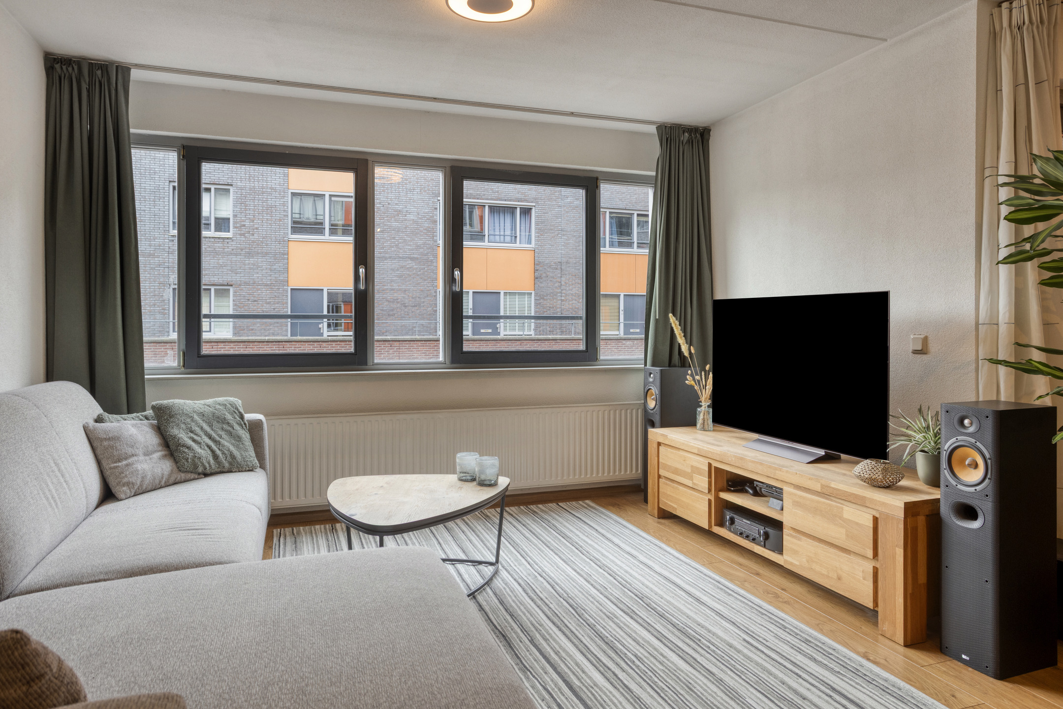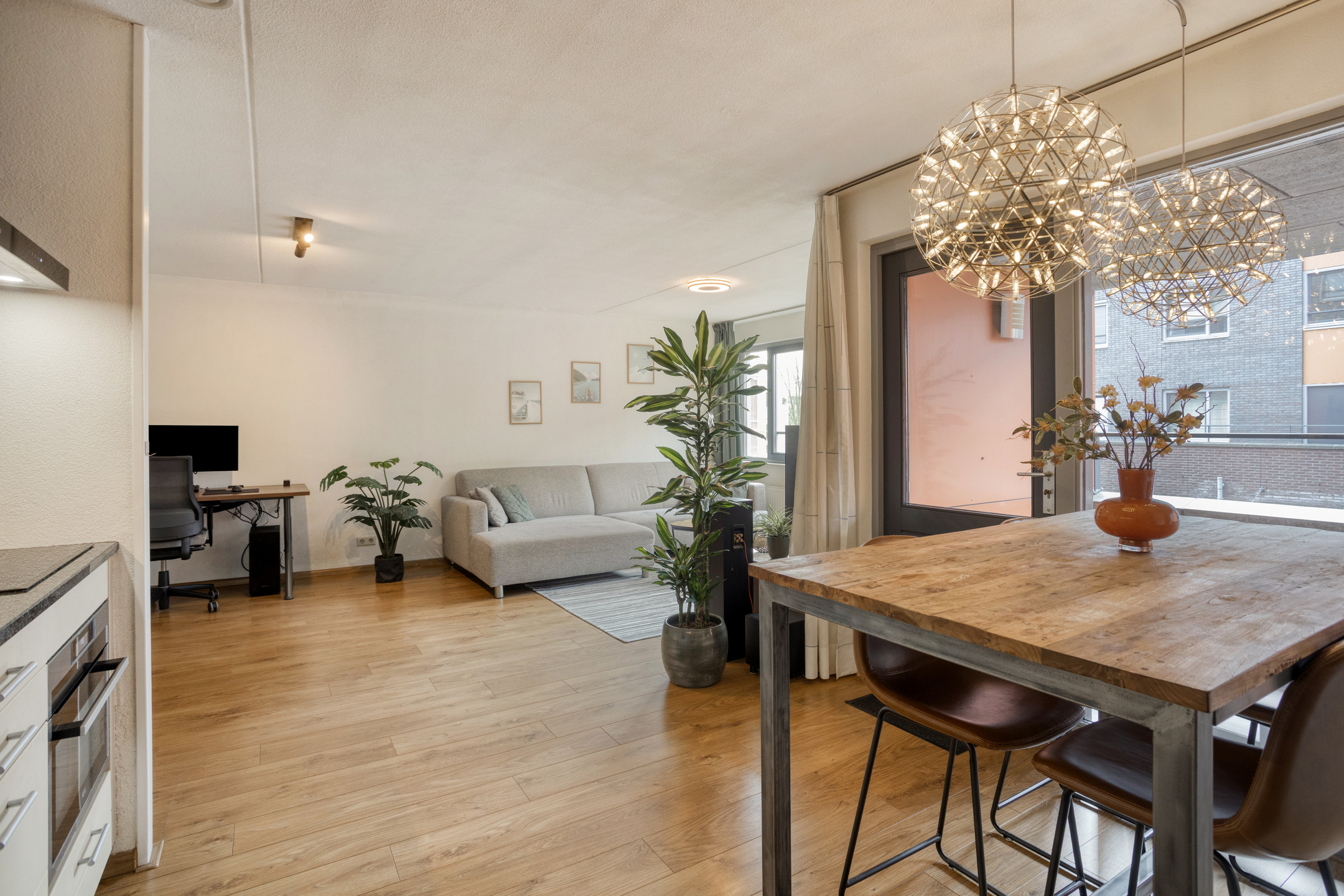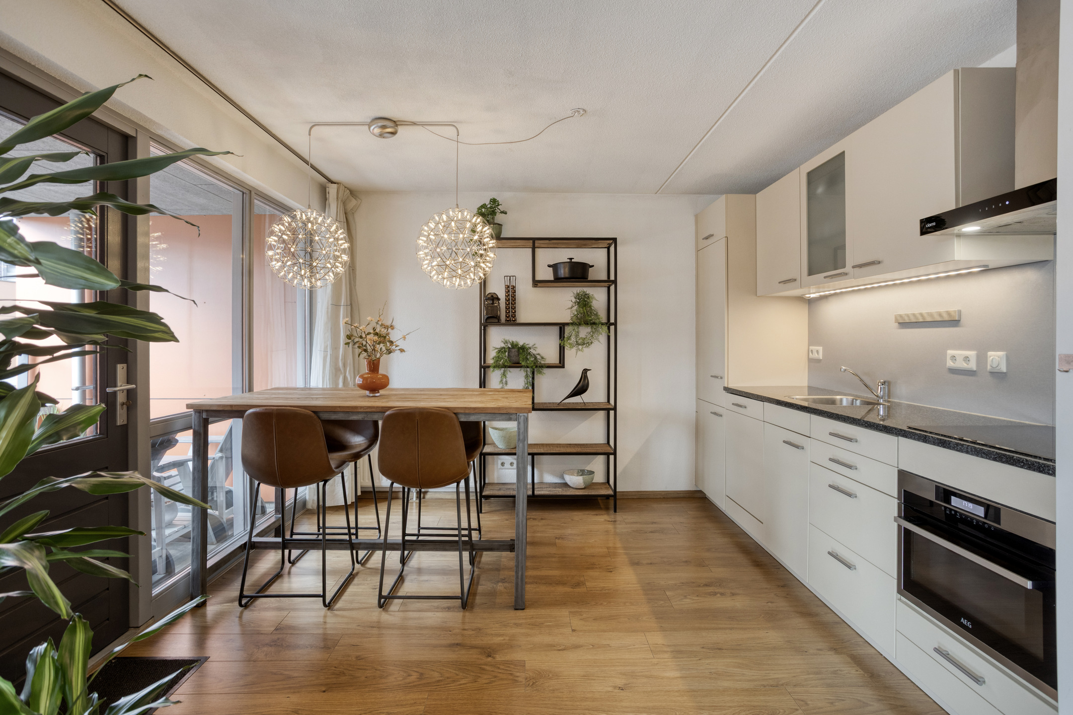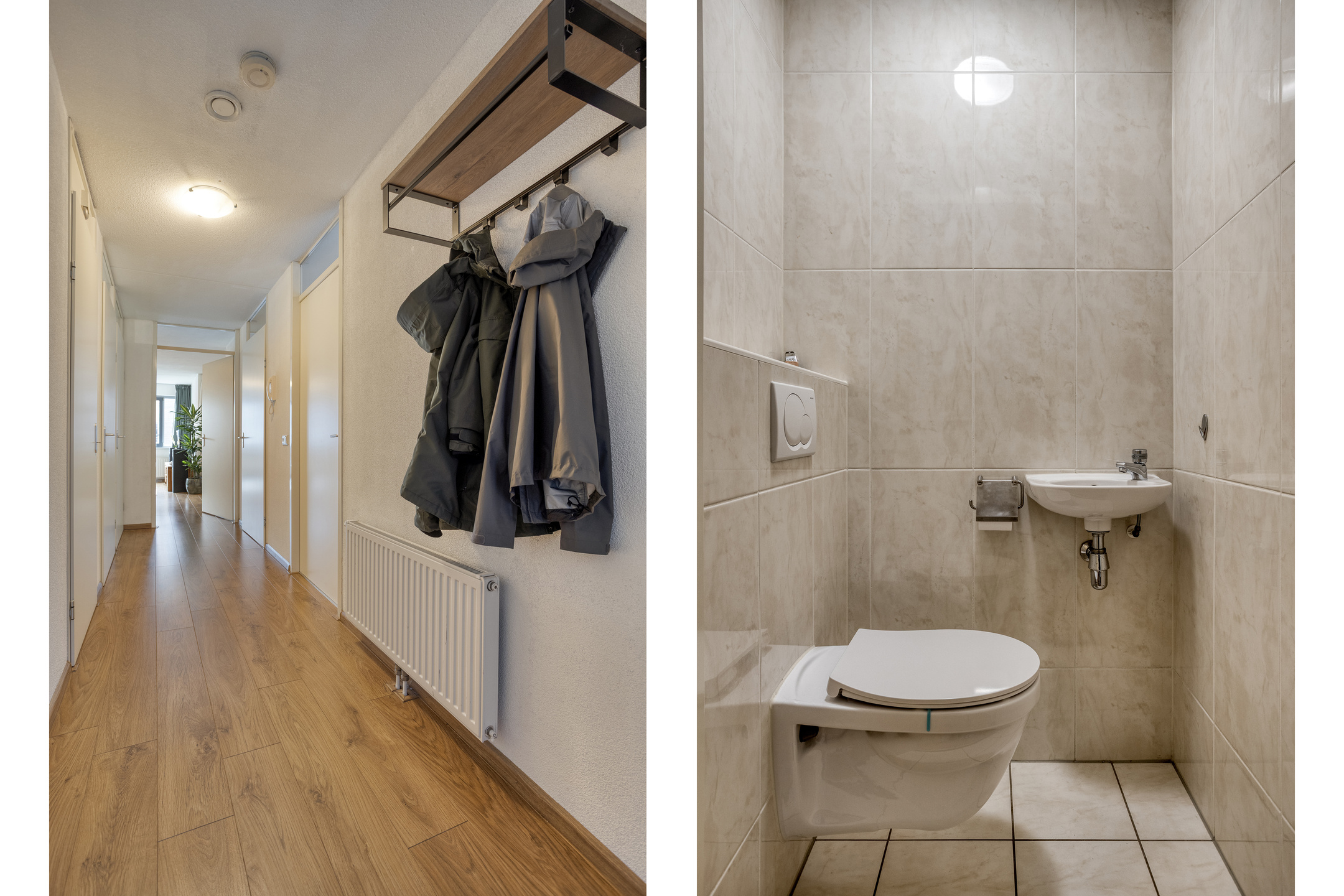 Entree/hal met meterkast en toiletruimte. De lichte en sfeervolle woonkamer is ruim opgezet en beschikt over een grote raampartij die zorgt voor veel natuurlijke lichtinval. De open keuken is voorzien van diverse inbouwapparatuur (deels v/d apparatuur is vernieuwd) en biedt toegang tot het balkon.