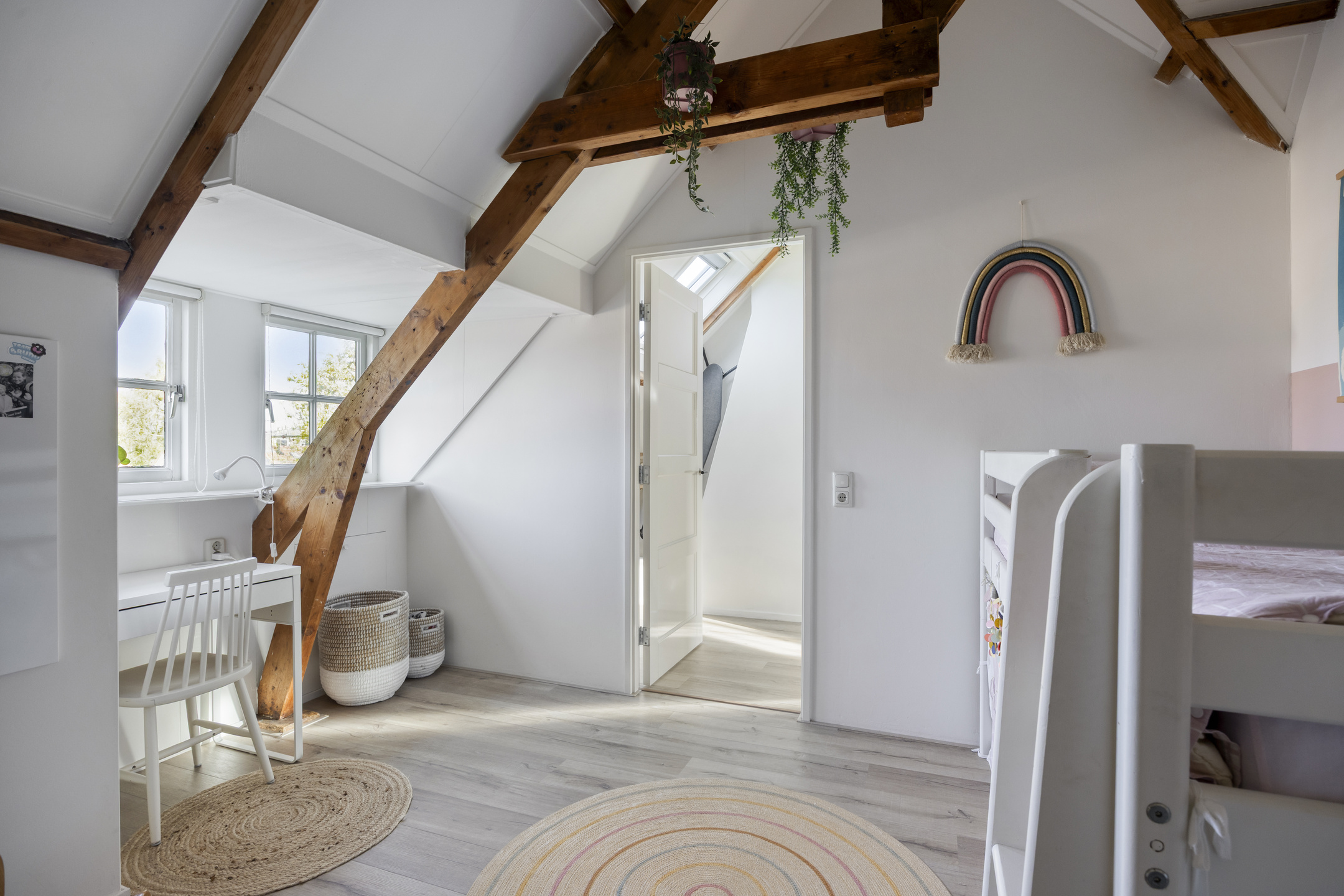 Via een vaste trap bereik je de fraai verbouwde zolder (2016), die is omgetoverd tot twee sfeervolle, lichte slaapkamers. Beide kamers beschikken over hoge plafonds en bieden een ruimtelijk gevoel. Eén van de kamers is voorzien van een dakkapel, terwijl op deze verdieping tevens drie dakramen extra zijn geplaatst, wat zorgt voor volop lichtinval. Daarnaast is er een praktische was- en droogruimte aanwezig.
