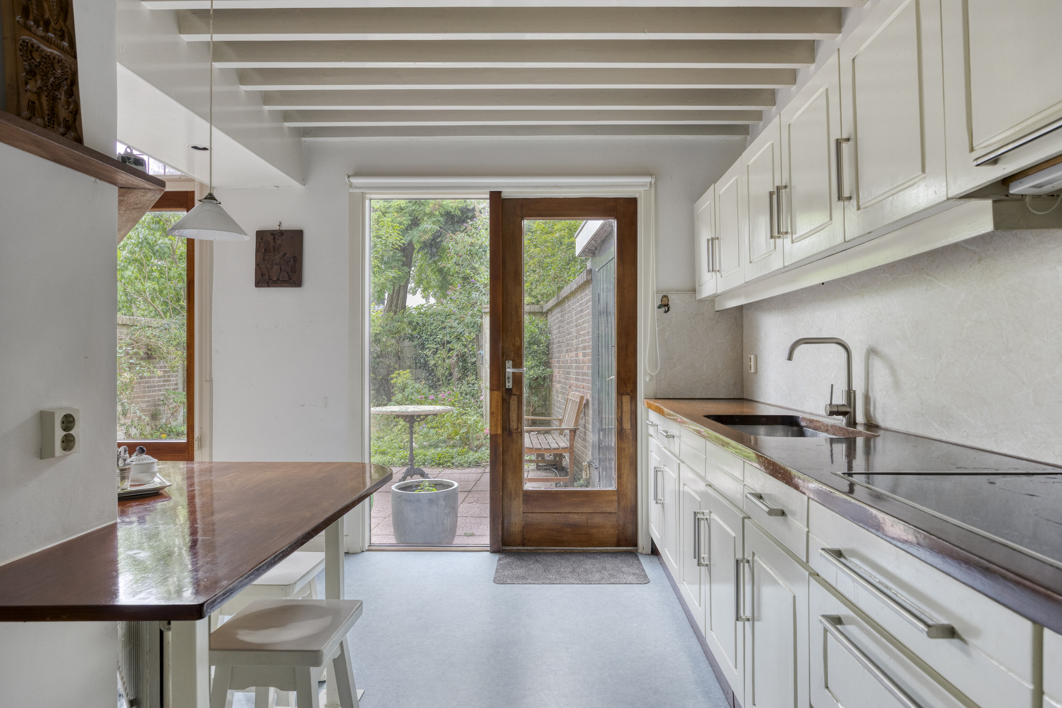 Deze woning biedt alles wat je zoekt: een rustige ligging op steenworpafstand van het centrum én de gezellige winkels en cafés van Nijmegen-Oost, een royale en zonnige achtertuin, een half open keuken die direct aan de tuin grenst en een indrukwekkend ruime woonkamer ensuite met erker en authentieke stijlkenmerken.