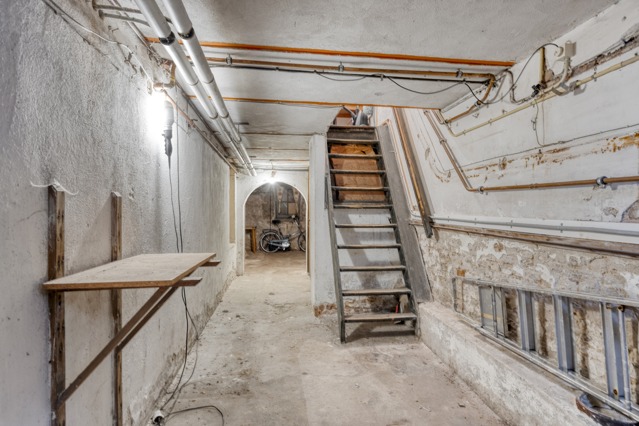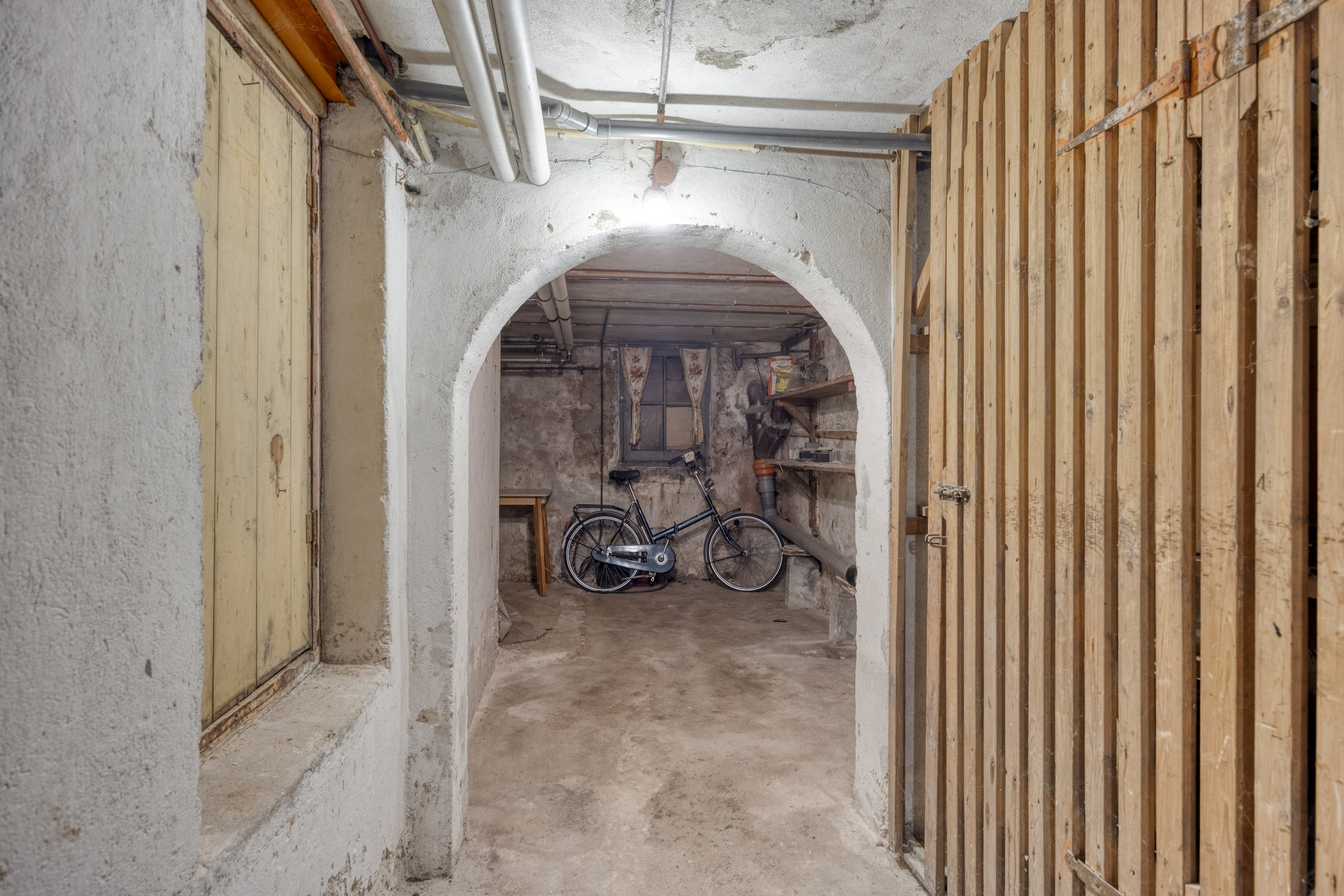 Kelder: provisiekelder / werkkamer met veel mogelijkheden voor extra bergruimte. Kelder is zowel binnendoor bereikbaar als via een trap in de voortuin.