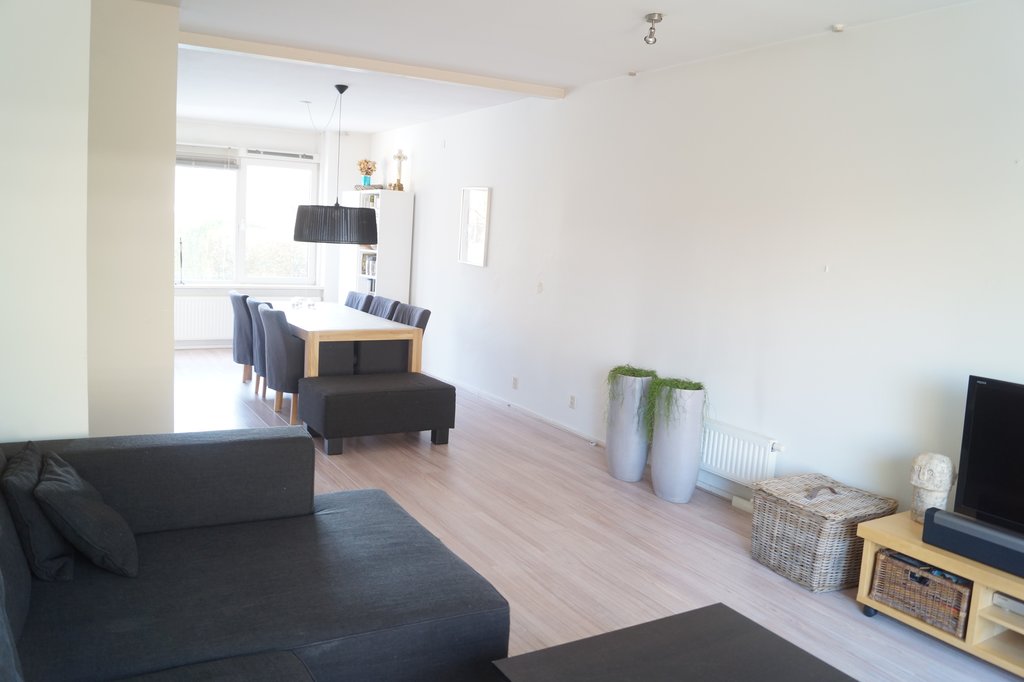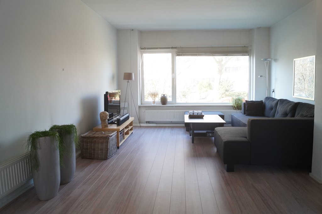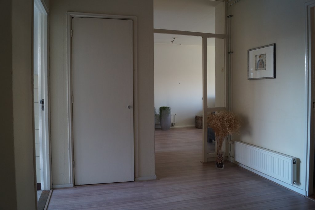 Entree, ruime hal met bergkast, modern toilet met fonteintje, royale lichte woonkamer met vrij uitzicht, dichte keuken met deur naar balkon, 2 ruime slaapkamers, nette badkamer met douche en vaste wastafel.