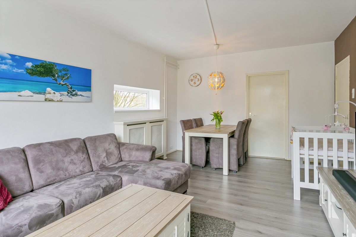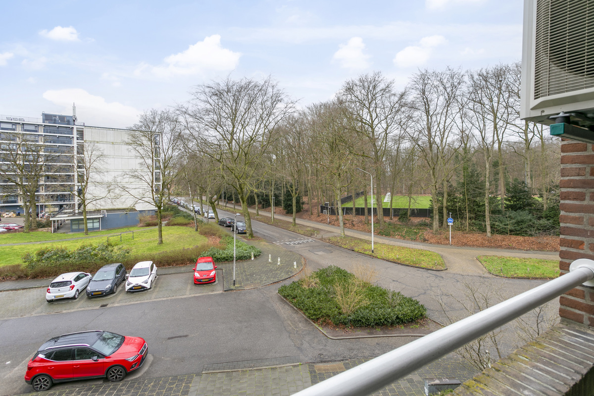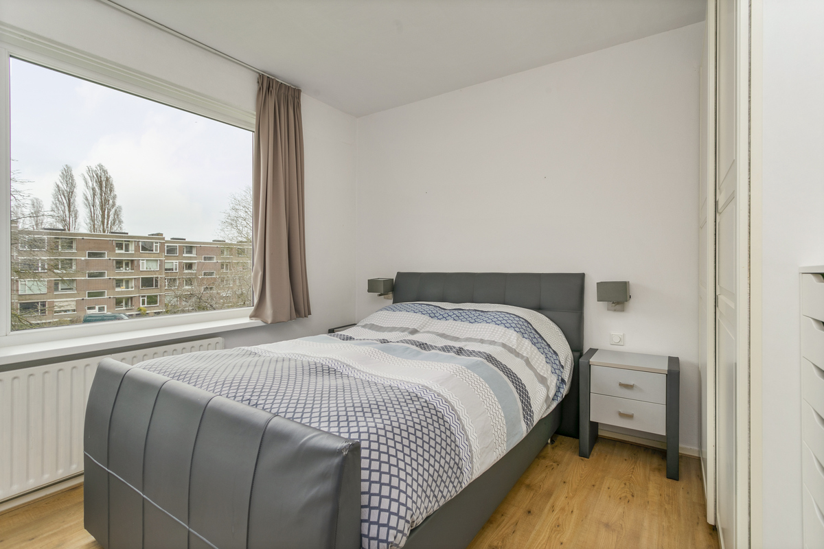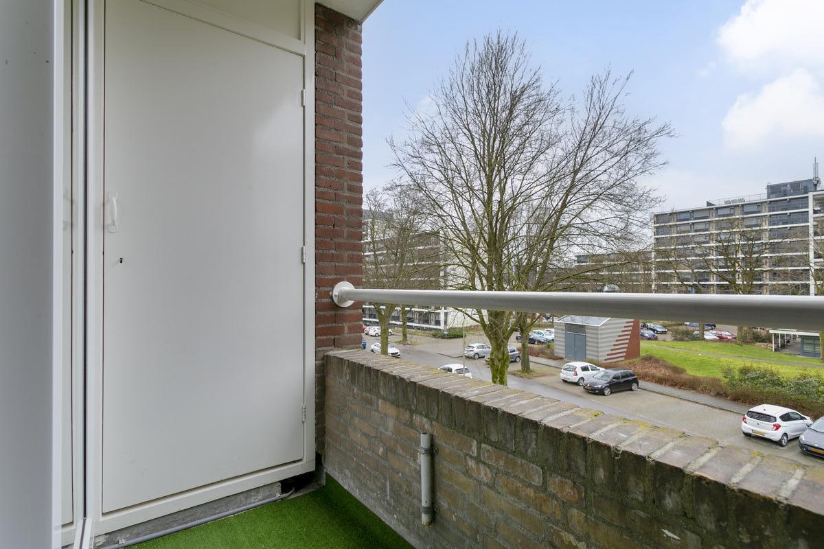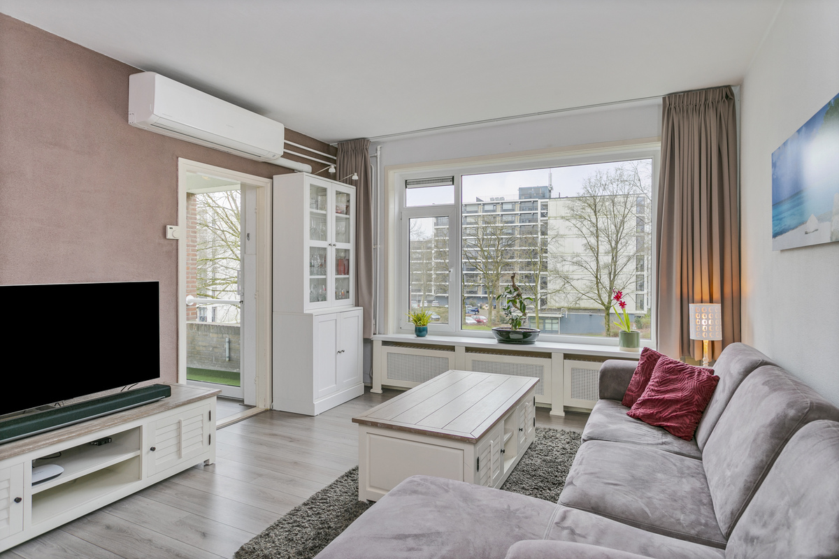 Entree, hal met bergkast en (separaat) toilet ’17. Woonkamer met veel lichtinval middels de grote raampartijen en toegang tot de gesloten keuken. Deze is voorzien van functionele inrichting en wasmachine-aansluiting. Vanuit de keuken is het balkon met vaste kast te bereiken. De twee slaapkamers zijn aan de achterzijde van het appartement gelegen. Tot slot de moderne badkamer ’21 met douche, wastafelmeubel en een kast.