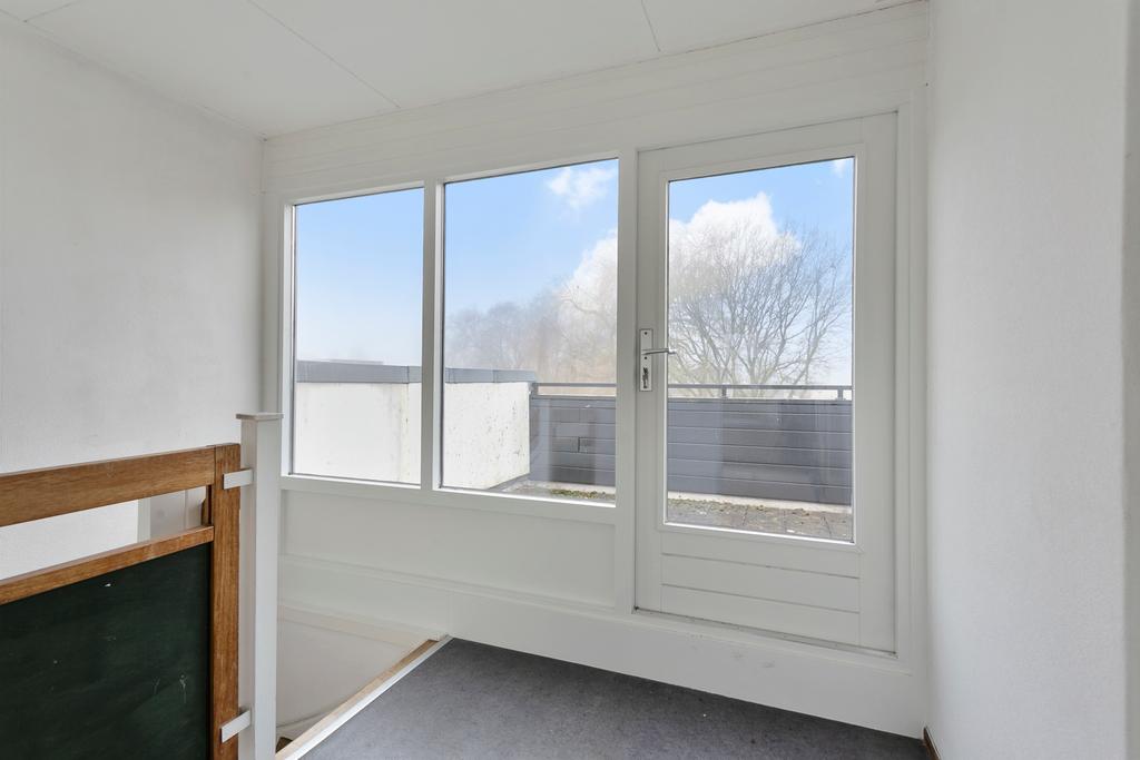Overloop met toegang tot het zonnige dakterras (zuidwest) a 18 m2 en nog eens 2 riante slaapkamers.